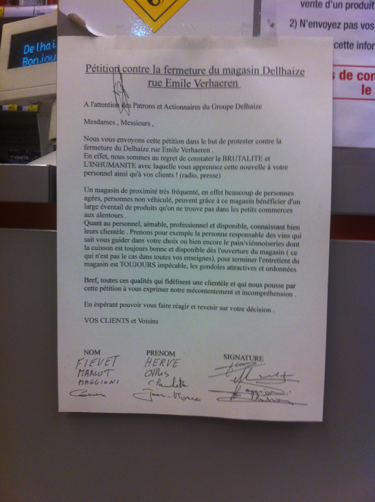 Ce samedi 21 juin 2014, de 18.00 à 19.30 se tient une manifestation de soutien aux employés du Delhaize-Verhaeren.