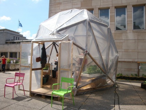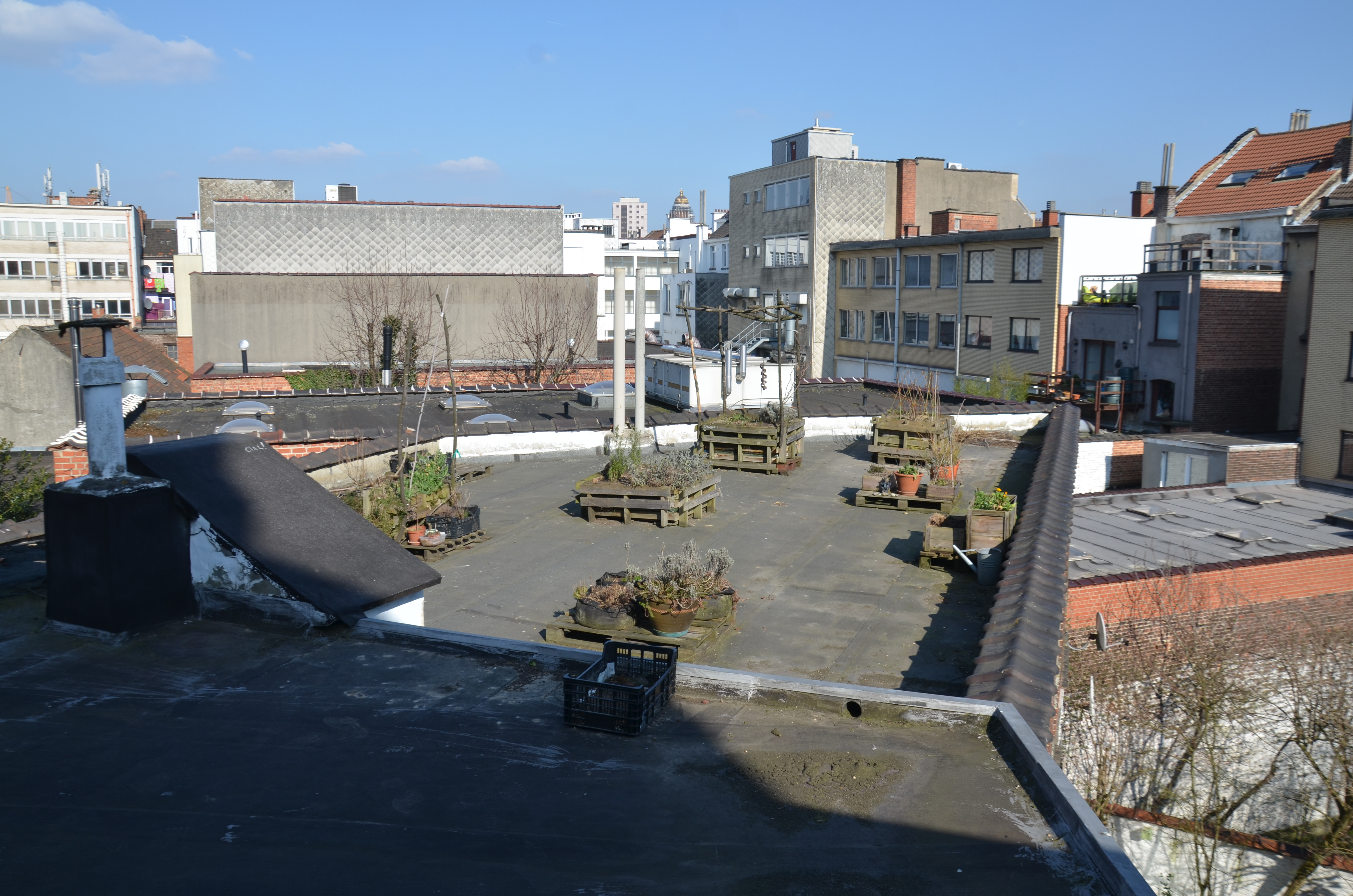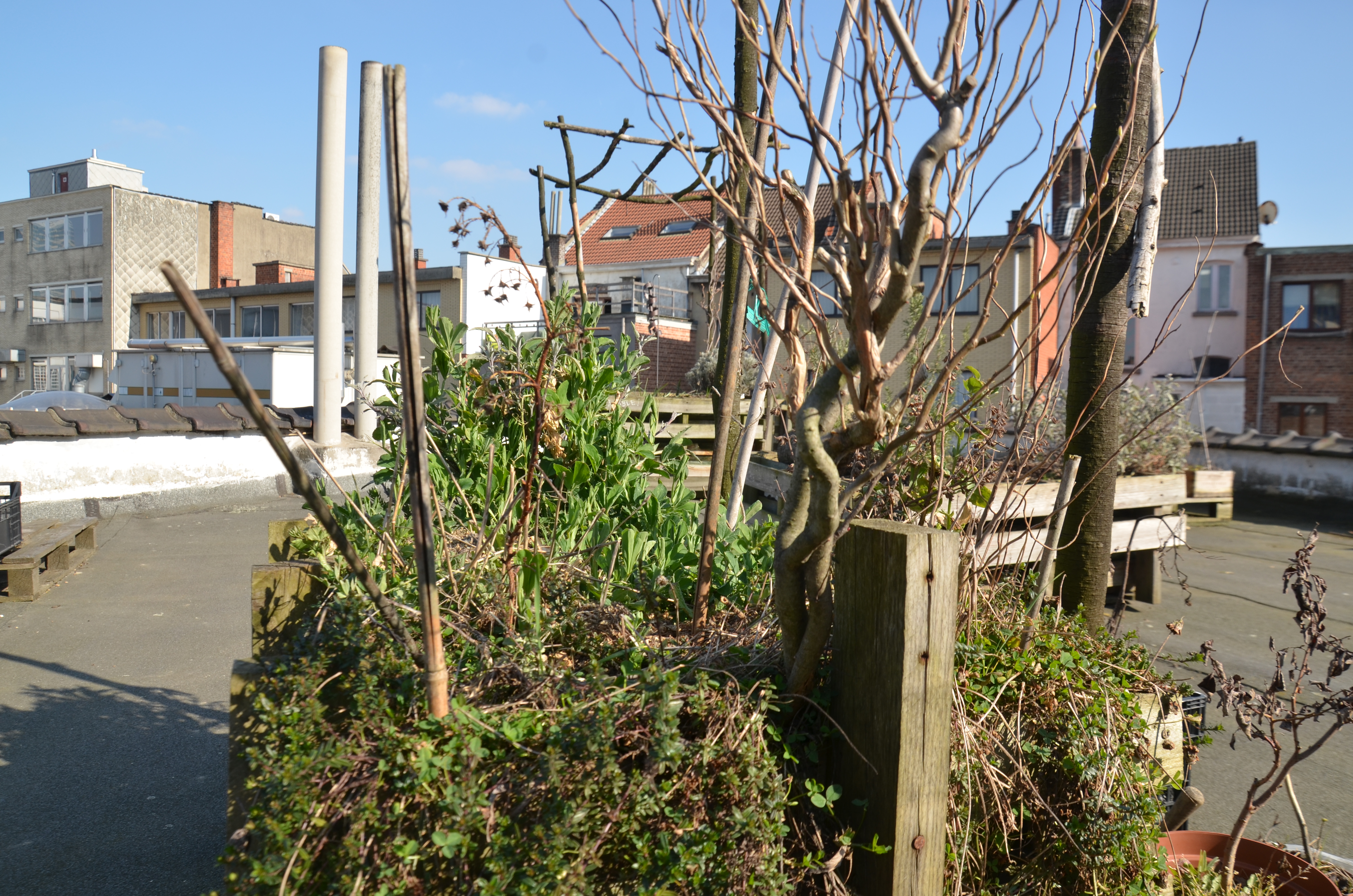 « Okno est une petite ASBL, qui promeut le développement de médias alternatifs mais surtout une réelle révolution artistique et écologique du monde qui nous entoure. Elle possède un potager sur toit de 150m² au 34, quai du charbonnage. Une ruche et un système de récupération d’eau y sont installés. Différentes plantes y poussent tels que des haricots, des plantes aromatiques, plusieurs tournesols, courgettes … » Plus d’informations sur: okno.be« .