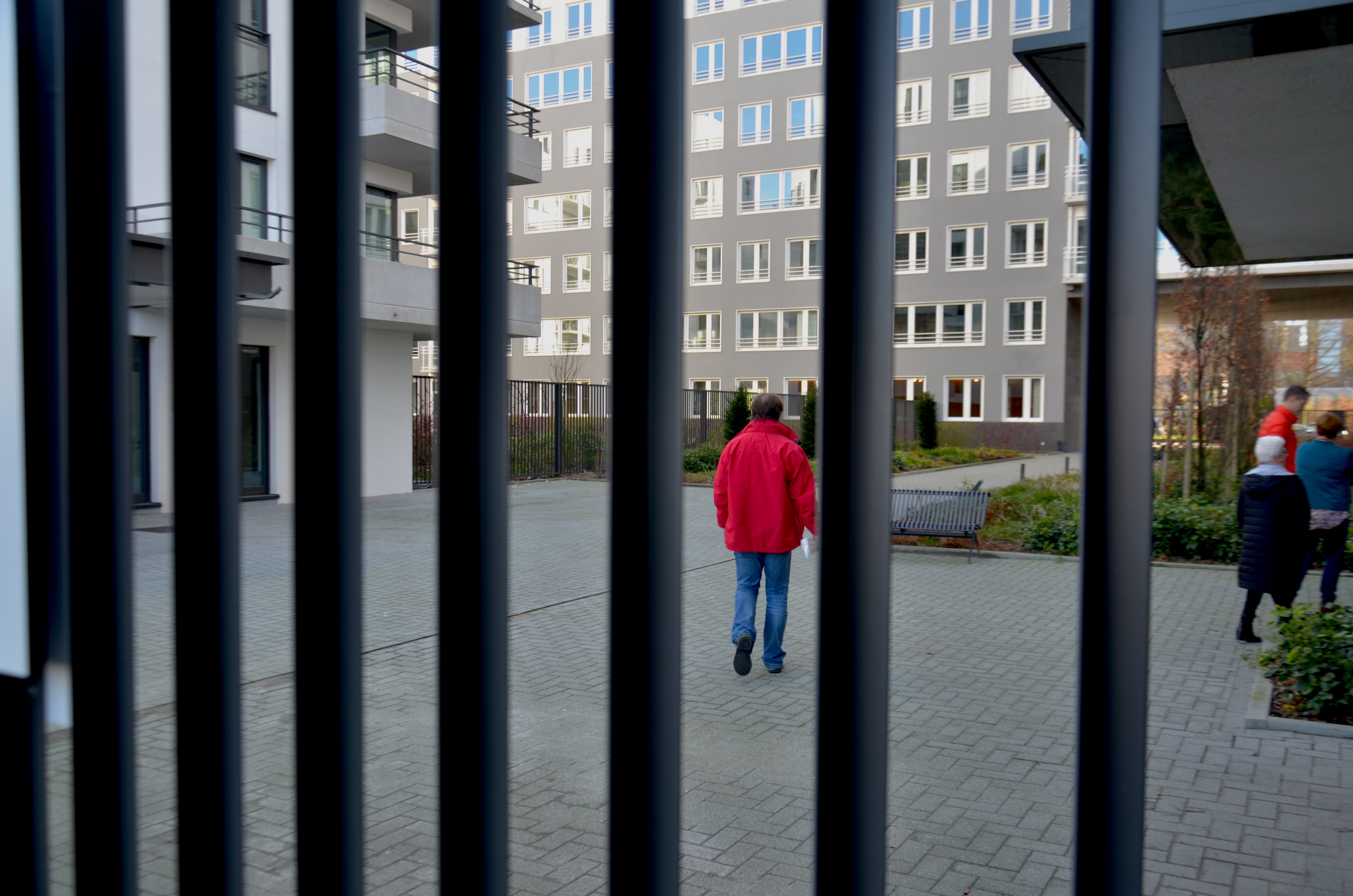 En région bruxelloise, certains de ces ensembles enclavés se développent discrètement – en intérieur d’îlot, comme au clos des Chartreux ou aux anciennes brasseries d’Ixelles – sans qu’il soit possible de deviner leur présence à partir de la rue. A Schaerbeek – au milieu de la Rue des Palais, à deux pas de la place de la Reine – se trouve par exemple un ensemble résidentiel de quarante appartements de moyen et haut standing baptisé « Palace court ». Vu de la chaussée, il s’agit d’un bâtiment austère et ordinaire. Mais, derrière le portique sécurisé, on trouve une ruelle et un jardin privé – un des seuls espaces verts du quartier – avec une vue imprenable sur l’église Sainte-Marie.