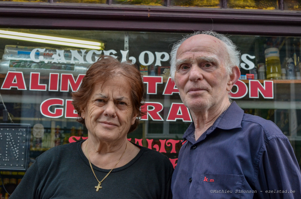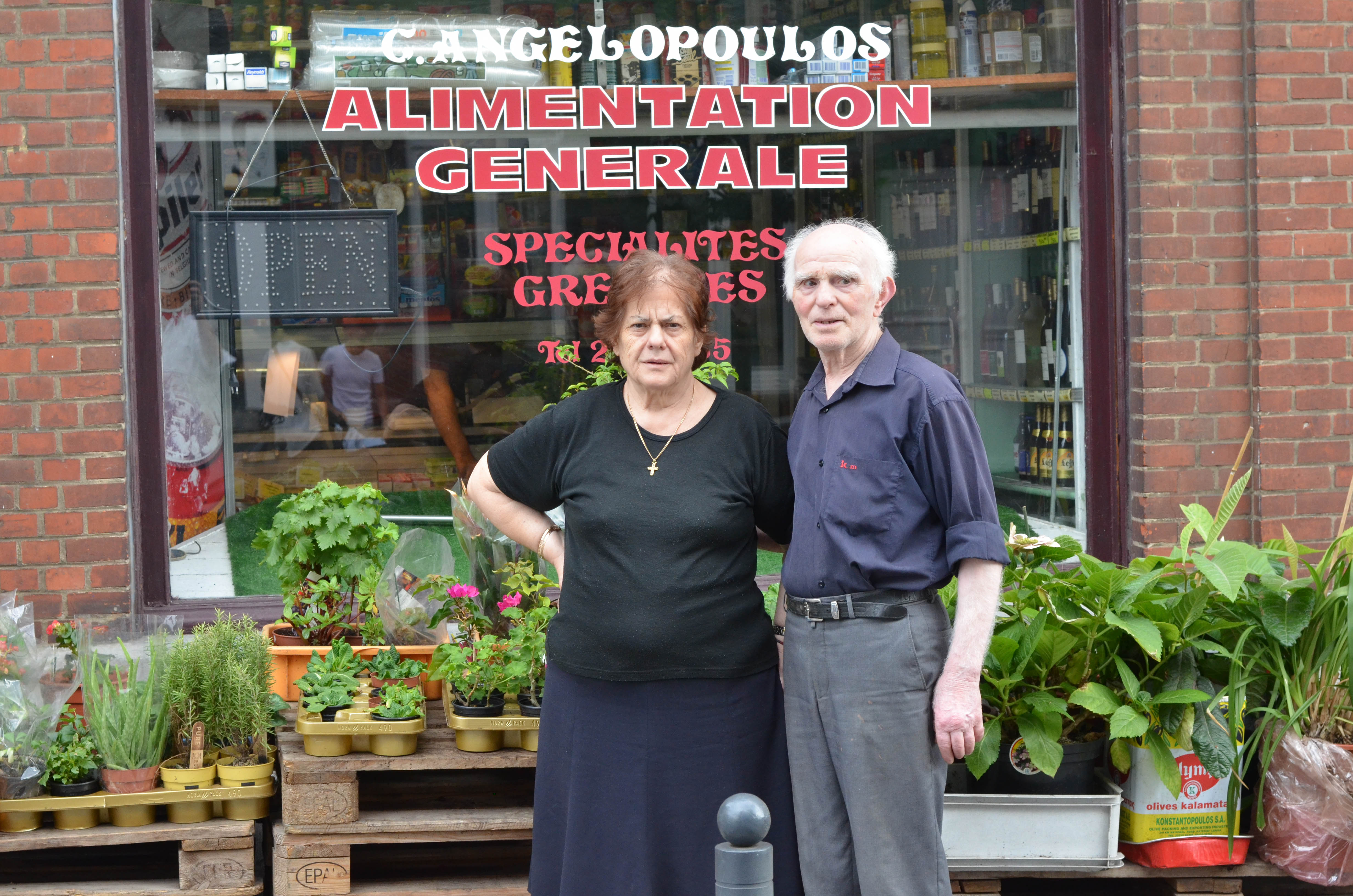 Katarina et Christos ont quitté leur Grèce natale au début des années 1960. Christos a travaillé à la mine pendant quelques années. Puis, le jeune couple s’est marié et a décidé de changer de cap, de s’installer en ville – à Bruxelles – en de lancer en 1969 une petite épicerie d’alimentation générale et de spécialités grecques. Le commerce existe toujours : il se trouve au croisement de la rue des Coteaux (n°228) et de la rue Henri Villard. Aujourd’hui, Christos et Katarina continuent à tenir la boutique et à faire les marchés, avec l’aide de leurs enfants et petits-enfants.