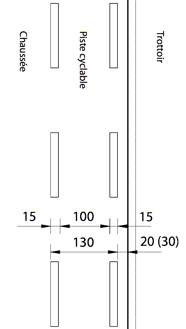 En résumé : nos chevrons se font passer pour les bandes (qu’ils ne sont pas) et nos bandes pour les « pistes » (qu’elles ne sont pas davantage). Sans doute peut-on alors se dire – en guise de consolation – que nos « fausses pistes » ont au moins le mérite d’être de « vraies bandes ». Eh bien, non, justement. Pas forcément ! Certaines de ces bandes cyclables bruxelloises qui se font passer en stoemelings pour des pistes ne méritent (non plus) le nom de « bandes ». Car, encore aujourd’hui, on trouve de nombreuses bandes qui font 130 cm ou moins … 20 centimètres de moins que la largeur minimale dans la plupart des autres villes européennes.
