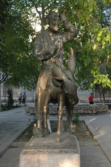 Il s’agit de la statue de Nasreddine Hoca (prononcez Hodja) assis sur son âne : philosophe populaire turc connu pour son humour et ses enseignements absurdes. A peine huit ans après son inauguration, la statue en fibre de verre et en résine synthétique (bakélite) a malheureusement déjà bien souffert … Le service du patrimoine cherche depuis quelques temps à collecter les fonds nécessaire à sa rénovation. En attendant, je voudrais vous raconter une histoire de Nasreddine. A vous de me dire à quoi ou à qui cela vous fait penser.