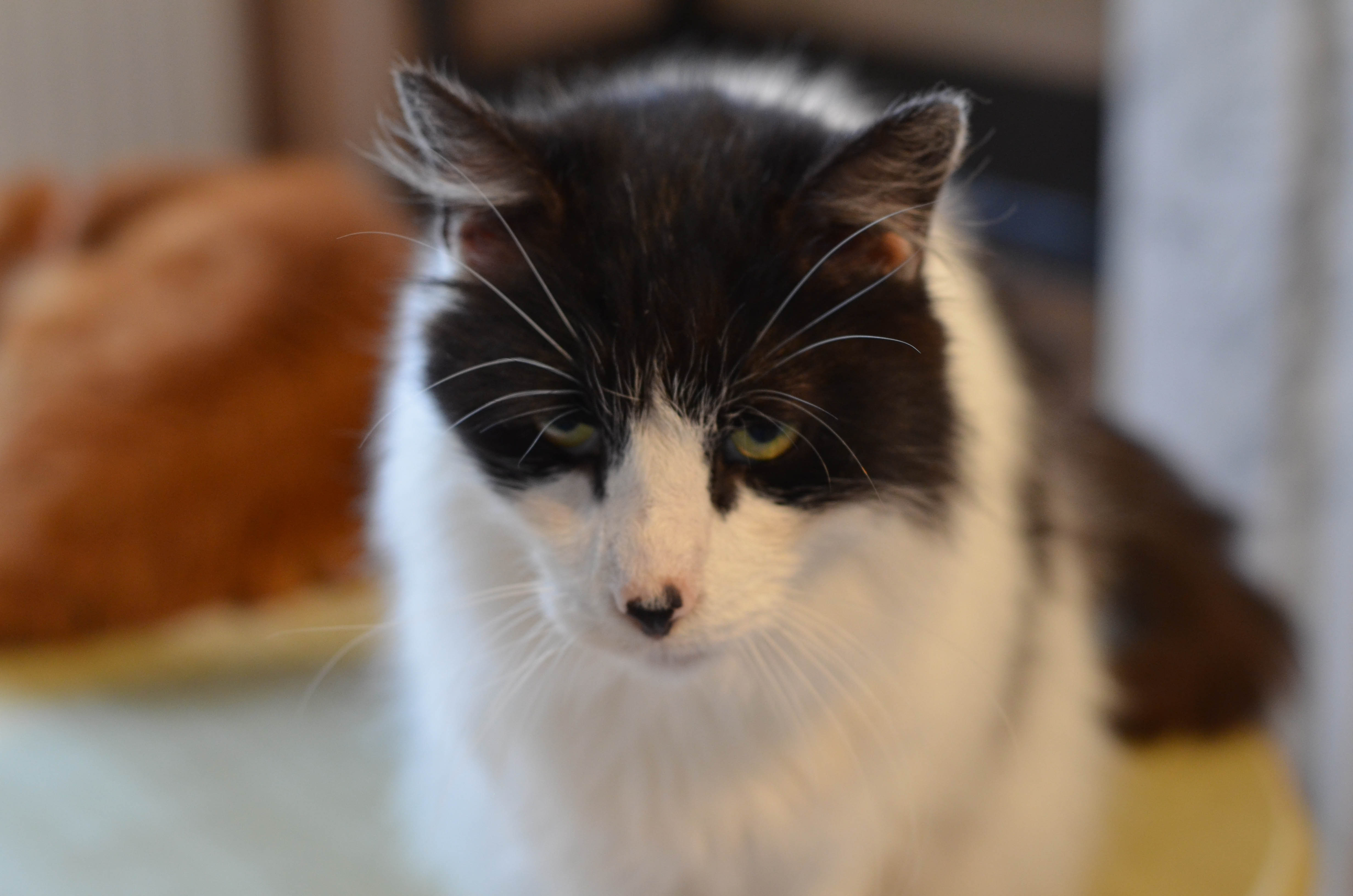 C’est dans le journal « Le Soir » que j’ai pris connaissance de la maison des chats. C’était il y a plusieurs années. L’article titrait : « une maison d’accueil pour chats sans abri ». Je voulais aller voir ça de plus près. Je m’y suis rendue (Le Fanal, 16, avenue Emile Max). Un chat a mis ses petites pattes sur mes jambes. J’ai dit à la bénévole : « je voulais un chat roux… mais je crois que j’ai trouvé mon chat. Elle est noire et blanche et s’appelle Cindy » ! , elle m’a répondu : « c’est ce qui peut vous arriver de mieux. Que ce soit elle qui vous adopte ! ».