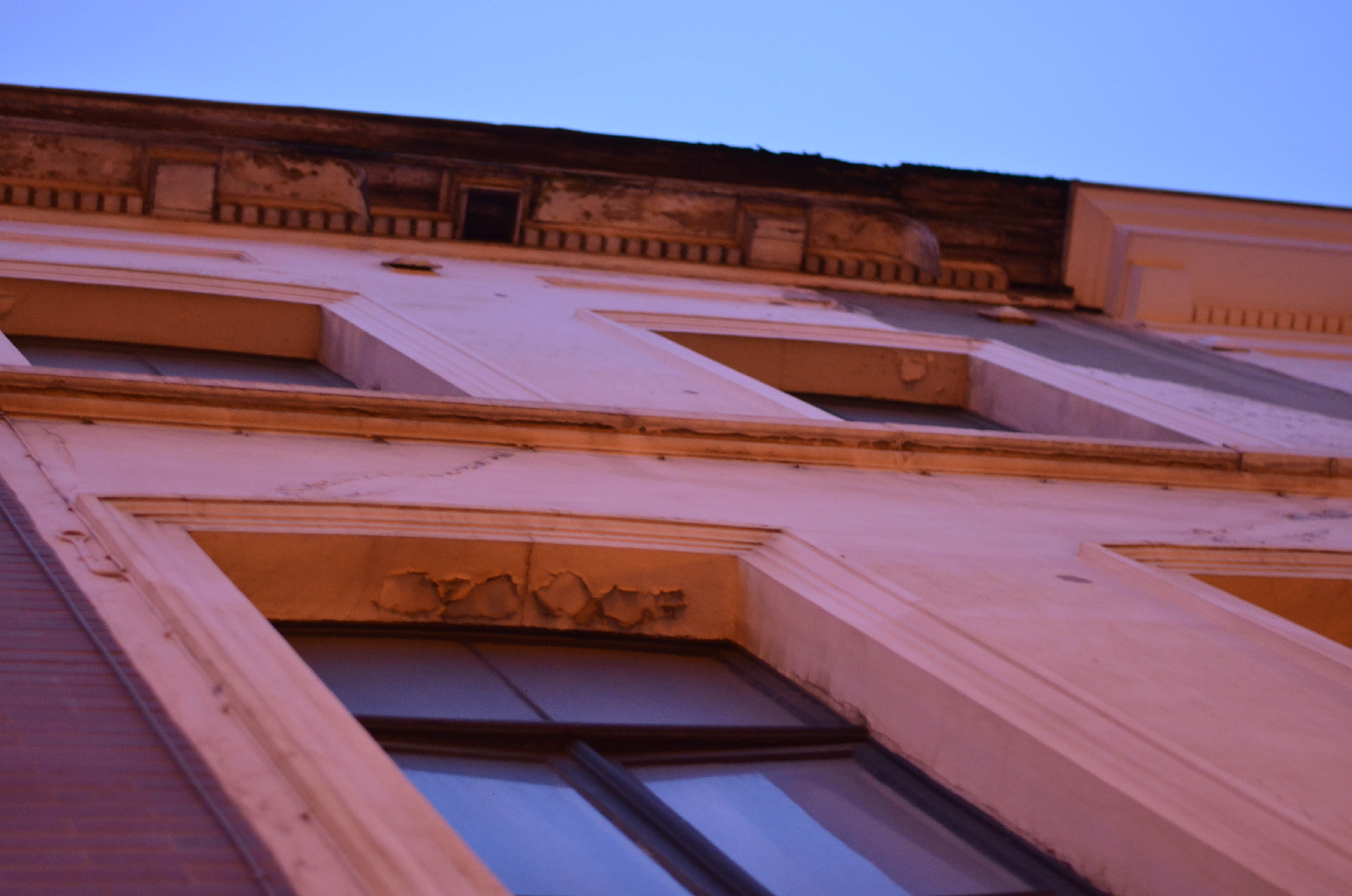 Rue Vanderlinden, en face de la galerie d’art, se trouve une maison blanche apparemment inhabitée : « pas de noms sur les sonnettes et sur les boîtes aux lettres, carreaux cassés et traces d’humidité et végétation ». Pourquoi ? Je ne sais pas. Peut-être que les propriétaires peinent à gérer leur bien, ou sont empêtrés dans des problèmes de succession, ou … attendent, tout simplement. A Bruxelles – où six maisons sur dix ne sont pas occupées par leurs propriétaires – d’aucuns voient parfois un intérêt à laisser un bien à l’abandon en attendant qu’il prenne de la valeur.