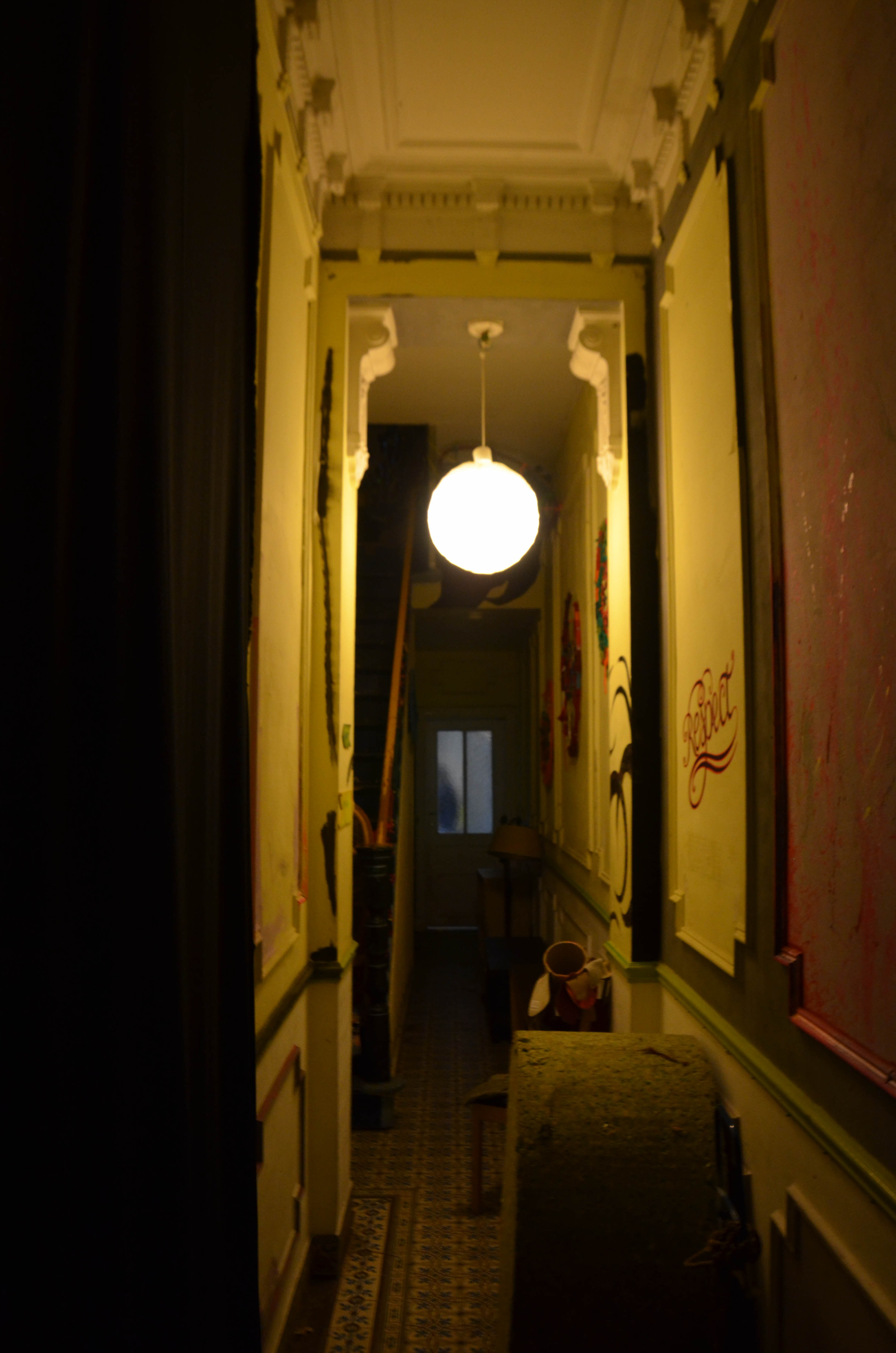 « Il y a eu une fête hier soir. J’espère que tu es ouvert d’esprit ». Simulant mal la confiance, je hoche la tête, et – ne sachant pas trop à quoi m’attendre – le suis jusqu’à la porte d’entrée. Dans le hall, je croise un jeune homme fébrile et zigzagant aux allures de Jack Sparrow. J’avance ensuite, un peu hésitant, jusqu’à la cuisine, au bout du couloir. Là, je tombe – contre toute attente – sur des gens plutôt charmants et intéressants. Curieux mélange de genres et de générations. Céline, une des occupantes, me parle du plaisir de la vie au squat, des efforts qui sont faits pour maintenir le bien en état, mais aussi des problèmes de « repli » et des déceptions de la vie en communauté.